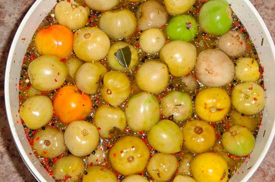 La siguiente receta de tomate en escabeche es muy original y sabrosa, lo que resultará especialmente interesante para los amantes de los snacks picantes. Para hacer este plato, deberá recolectar un cubo de 10 litros de tomates verdes de la última cosecha.
