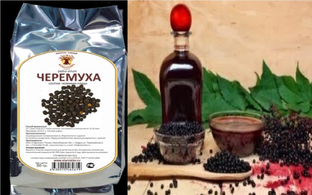 Enjuague bien las partes secas de la cereza de pájaro, muélalas y disuélvalas en agua en una proporción de 1:12. Ponga a calentar en un baño de agua durante 20 minutos, y luego déjelo por otra media hora. Luego cuele varias veces a través de una gasa en un recipiente aparte. Manténgase refrigerado.
