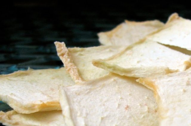La parte inferior de la bandeja para hornear se cubre con papel de hornear y las rodajas cortadas se extienden sobre ella. La temperatura recomendada del horno es de 70 a 75 grados. En este caso, un requisito previo es una puerta del horno ligeramente abierta para liberar el exceso de humedad. El proceso de secado generalmente toma de 6 a 8 horas con un cambio periódico de papel; se moja por el exceso de humedad.