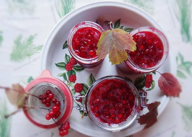 Viburnum espacios en blanco popular porque después de un procesamiento especial, las bayas no solo se vuelven útiles, sino también muy sabrosas.Después de todo, en invierno es mucho más agradable comer mermelada o beber una bebida de frutas dulce que masticar bayas secas.