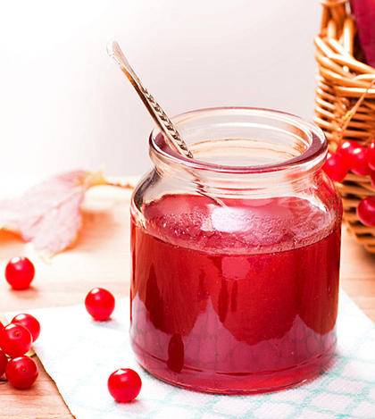 Es muy bueno agregar jarabe de viburnum brillante a helados, gelatinas o pasteles. Es fácil de cocinar, solo necesitas tomar agua, frutos rojos y azúcar. Es recomendable blanquear las bayas, luego picar y revolver con azúcar.