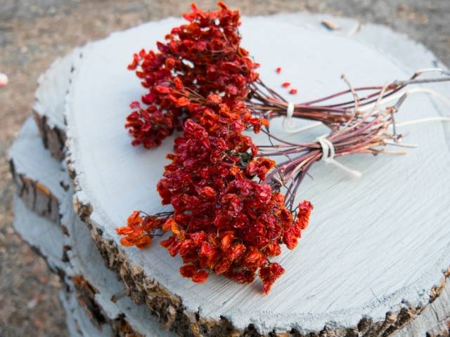 - después de la recolección, debe secar el viburnum colgando los racimos de una cuerda en una habitación oscura y seca.