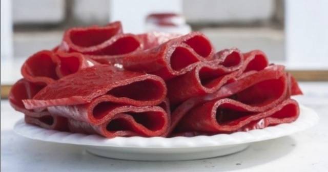 Ahora necesitas verter azúcar y ácido cítrico, mezclar y cocinar hasta que espese aún más. En una bandeja para hornear cubierta con pergamino, o en formas especiales, se vierte la masa de viburnum. Después de enfriar, la pastilla debe salir fácilmente del molde, se vuelve fibrosa y densa.