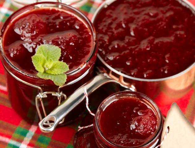 Es mejor usar un exprimidor para obtener el jugo. Las bayas se pasan a través de él, el jugo se vierte en un recipiente con un fondo grueso o doble y se hierve hasta obtener la consistencia de un puré de bayas.