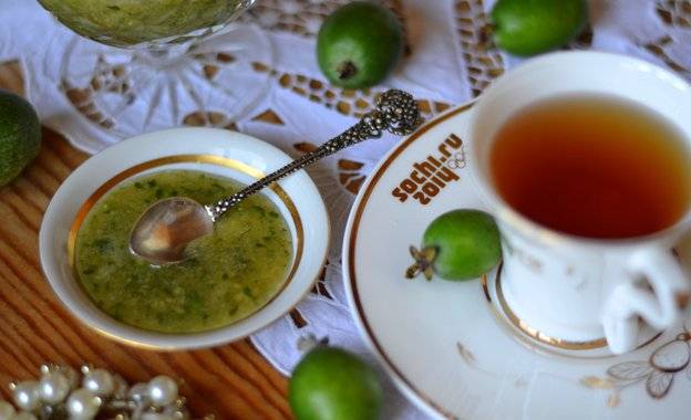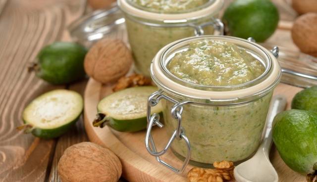 Al observar todos los requisitos, puede tratar a sus familiares con una deliciosa mermelada aromática: feijoa, puré con azúcar.