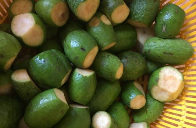 - Cortamos las colas de la feijoa, pero no es necesario quitarle la piel, porque contiene una mayor cantidad de nutrientes.