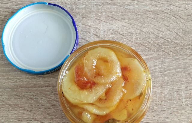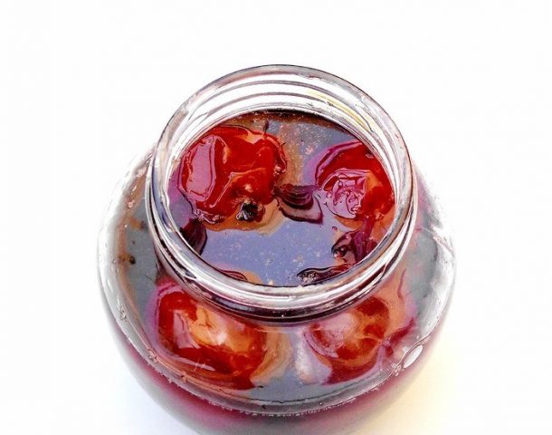 - Durante la última cocción, se agrega ácido cítrico y, mientras está caliente, la pieza de trabajo se coloca en frascos de vidrio, sellados herméticamente.