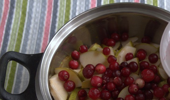 También puede simplemente hacer mermelada de pera con la adición de manzanas y arándanos rojos.