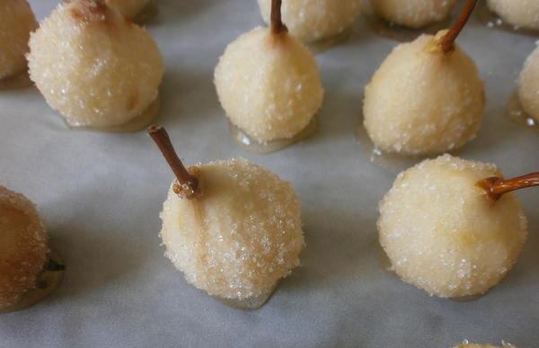 - En un bol grande, vierte las mitades de las peras con azúcar y déjalas por 6 horas.