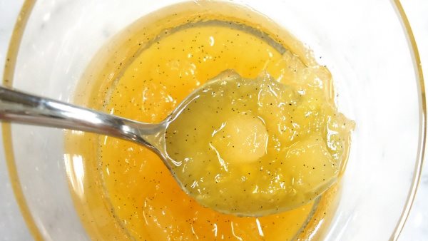 - La cocción debe terminar en el momento en que las rodajas de ambas frutas adquieran cierta transparencia.