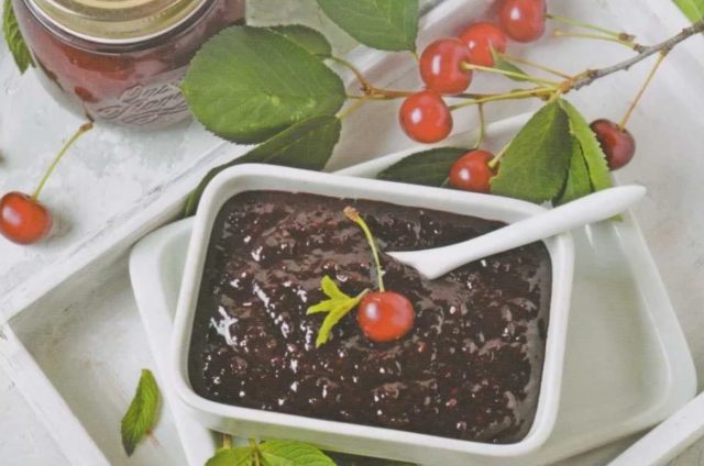 La mermelada de cerezas sin semillas para el invierno se sirve con tostadas, panqueques, se come como un plato independiente y se regenta con té. Es bueno como relleno dulce para pasteles y tartas, pasteles, guisos. En invierno, el manjar agrada con un increíble sabor de verano.