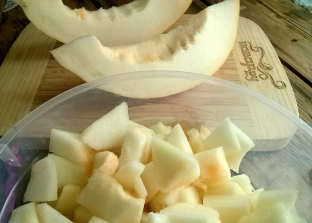 - Lavar el melón, pelarlo, cortar la pulpa en trozos pequeños.
