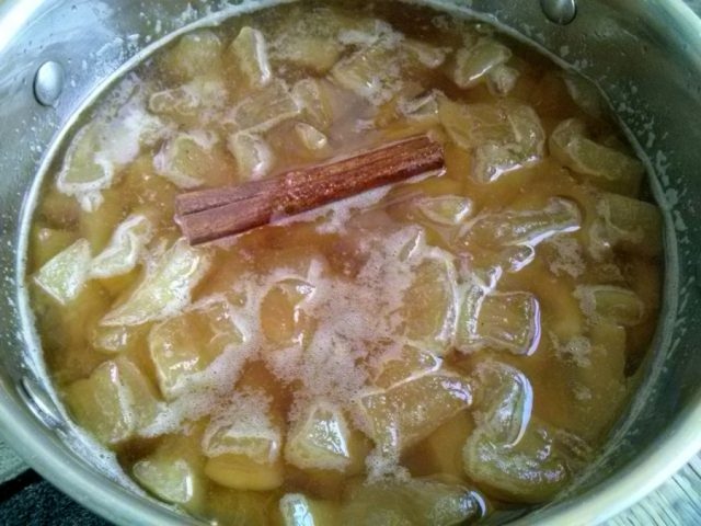 - al cocinar, el melón se cocina durante mucho tiempo, mientras se convierte en una masa homogénea;
