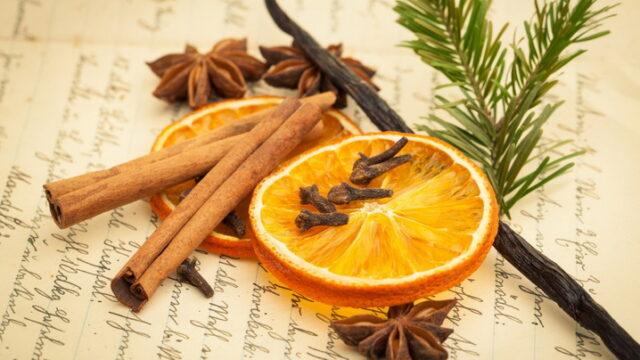 Las ramas de vainilla o canela complementan perfectamente el aroma brillante de la mandarina.