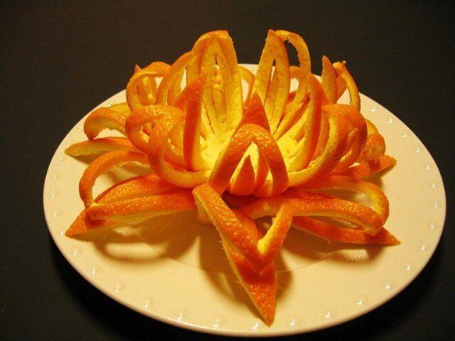 Es recomendable pelar la fruta con cuidado, retirando grandes fragmentos de la cáscara, luego se pueden cortar bellamente.