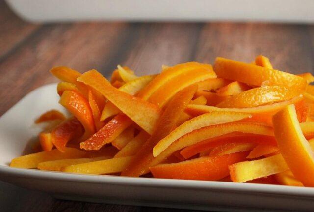Las frutas cítricas se pueden consumir sin desperdicio haciendo frutas confitadas a partir de cáscaras de mandarina. Esta deliciosa golosina puede reemplazar fácilmente a los dulces. El postre se prepara de varias maneras, incluidos varios ingredientes, especias. Las frutas secas confitadas se comen como un manjar independiente o se agregan a los productos horneados.