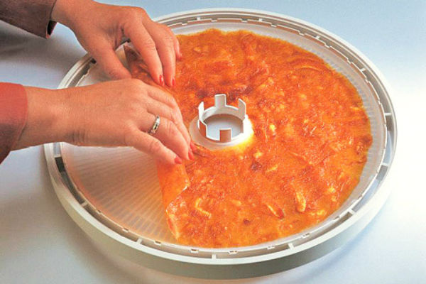 En una bandeja para hornear, se cubre una secadora eléctrica con papel de hornear lo más delgado posible. Cuanto más gruesa sea la capa, más tiempo se secará la pastilla. El tiempo medio de cocción es de 5 a 7 horas.