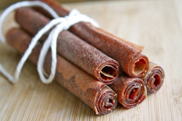 La verdura se lava y se pela. Saca las fibras y las semillas. Cortar y guisar hasta que estén tiernos. Ponga todo en una licuadora y muela en puré de papas. Coloque papel en una bandeja para hornear, vierta el futuro malvavisco con una capa delgada. Secar durante 5 horas con la puerta entreabierta. La temperatura no supera los 50 grados. Sacan el postre terminado, lo retiran del pergamino y lo enrollan.
