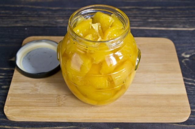 - En 20 minutos, el recipiente con melocotones se vuelve a esterilizar.