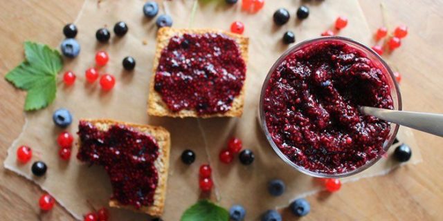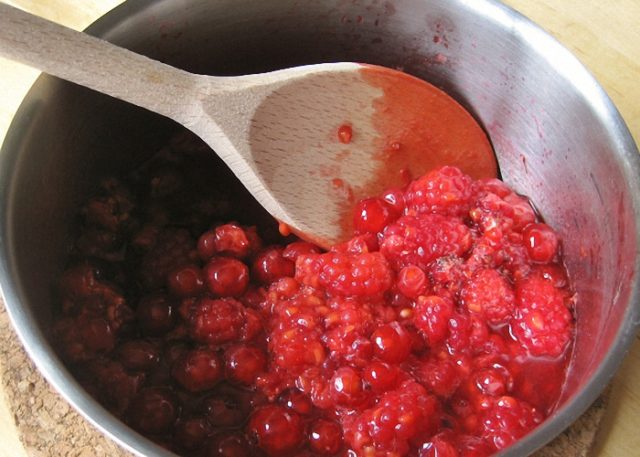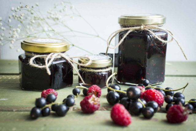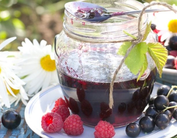 La mermelada de frambuesa y grosella negra es un saludable manjar casero que, en su forma pura, está en perfecta armonía con el té negro y la leche fresca tibia. El producto espeso y dulce se puede usar como relleno para pasteles, cobertura para helado y salsa para rosquillas aireadas.