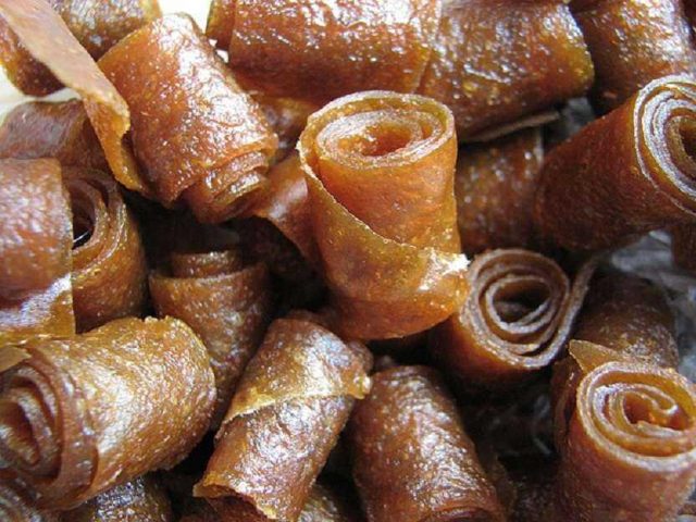 La pastila de melocotón es un dulce oriental que tanto niños como adultos comen con placer. Contiene todo el conjunto de microelementos útiles (potasio, hierro, cobre) y vitaminas del grupo B, C, P, que contiene la fruta fresca. Hay un producto terminado a la venta, pero contiene mucho azúcar y aditivos químicos.