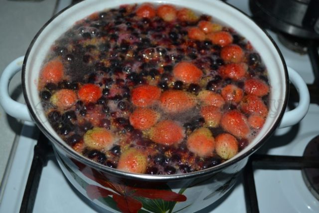 - El jugo hirviendo se vierte en las bayas y la mezcla se lleva a ebullición, revolviendo continuamente.