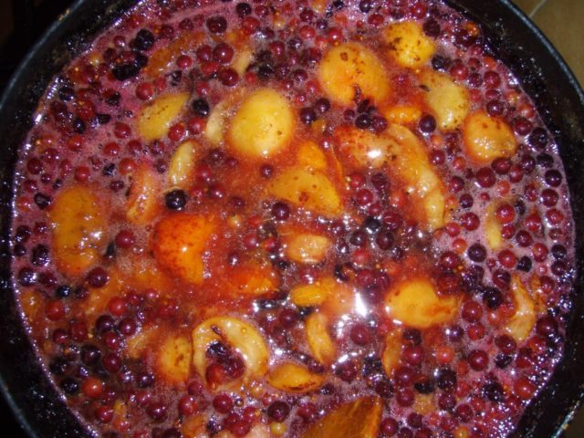 - Agregue 0,5 kg de ciruelas pasas a 1,5 kg de grosella negra.