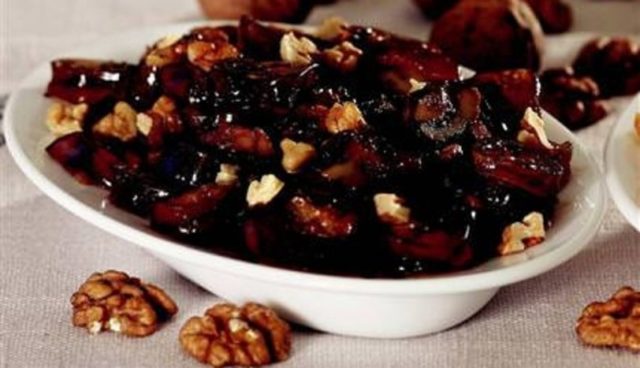 Para complementar el sabor, puede agregar un puñado de nueces tostadas y cocinar a fuego lento durante otros 5 minutos. El sabor del postre se volverá más refinado, más interesante, pero la vida útil disminuirá.