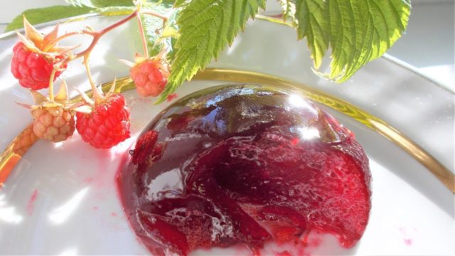 A muchas personas les gusta la mermelada de frambuesa para el invierno que sea espesa como gelatina y como mermelada. Por eso es más conveniente ponerlo encima de un panecillo cubierto de mantequilla, usarlo para hornear, a la hora de preparar postres dulces.Para obtener la consistencia deseada, se utilizan ingredientes adicionales como gelatina, pectina, gelatina o agar-agar en la composición de mermelada de frambuesa (jalea) para el invierno.
