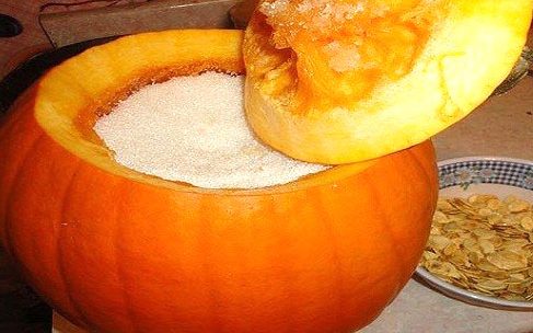Para preparar néctar de calabaza con azúcar, debe tomar una verdura madura de tamaño mediano, lavar, cortar la parte superior y liberarla de las entrañas. Luego vierta azúcar en la calabaza hasta el borde.Poco a poco, el azúcar refinado se descongelará y la verdura comenzará a segregar jugo, por lo que es necesario colocar un recipiente debajo, cubrirlo con una tapa previamente cortada y colocarlo en un lugar oscuro y fresco.
