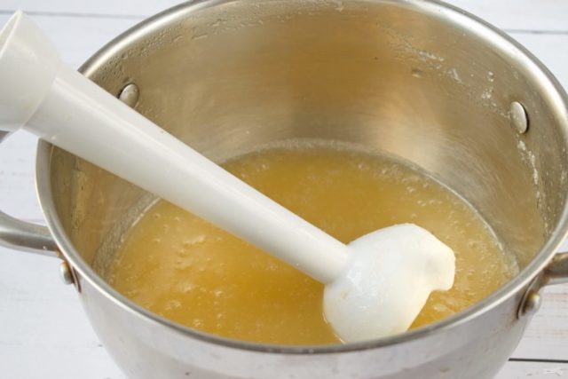 - Cocine la mezcla a fuego lento hasta que hierva. Para que no se queme, se agita constantemente.
