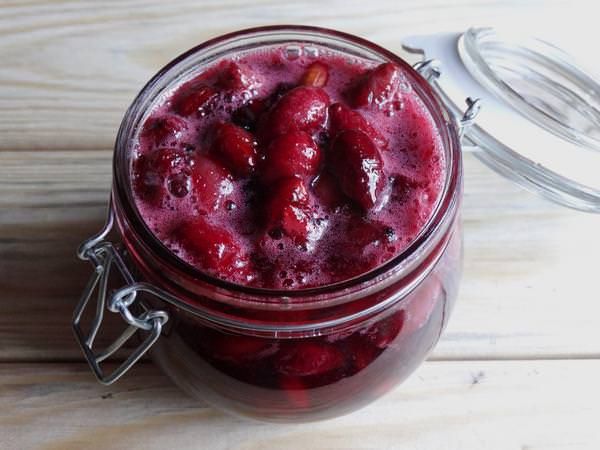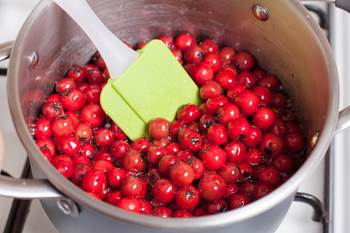- Luego se calienta nuevamente el espino en almíbar de azúcar, se agrega ácido cítrico y se hierve a fuego muy lento durante 20 a 30 minutos. La espuma se elimina constantemente durante todo el período de cocción.