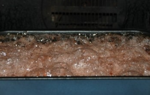 - Cuando el azúcar comience a convertirse en espuma, debe abrir el horno un par de veces, revolver el contenido de la bandeja para hornear y eliminar, si es posible, el exceso de espuma.