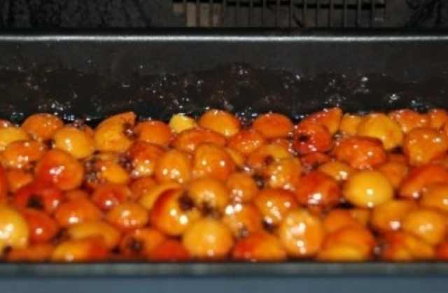 - Los frutos se cubren con azúcar y, cubiertos con una tapa de posibles insectos, se dejan calientes durante al menos varias horas.
