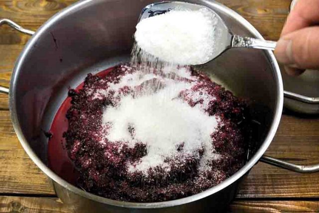 - Cuando la mermelada de saúco negra o roja comience a espesarse, añadir el resto del azúcar y el ácido, después de disolverla en una cucharada de agua. Mezclar la masa.