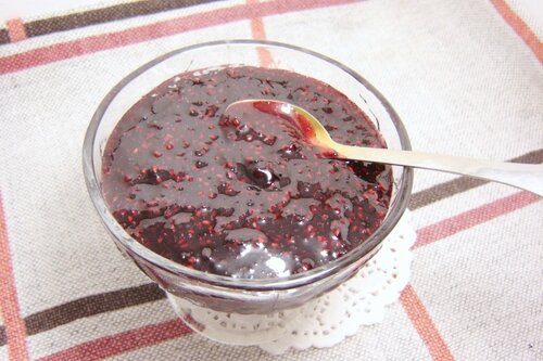 La mermelada de frambuesa negra es moderada en calorías. Son 273 kcal. Cuando se consume en grandes cantidades, el postre puede provocar un aumento de peso.
