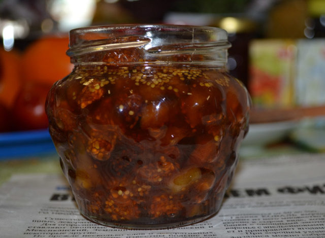 - Vierta la mermelada en frascos, cubra con tapas y esterilice durante un cuarto de hora en una cacerola con agua hirviendo. Sellar herméticamente, dar la vuelta, envolver con un paño tibio y enfriar.