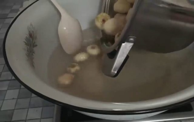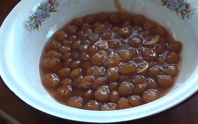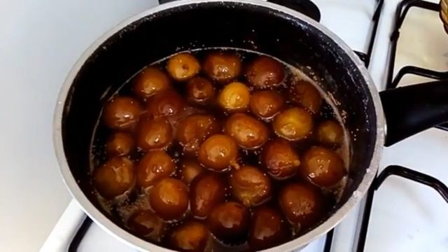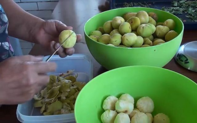 Para que las frutas no se agrieten durante la cocción, deben sumergirse en almíbar hirviendo cuando se sequen (después del lavado, deben colocarse sobre una toalla de papel y secarse bien).