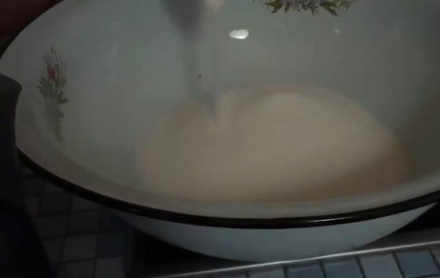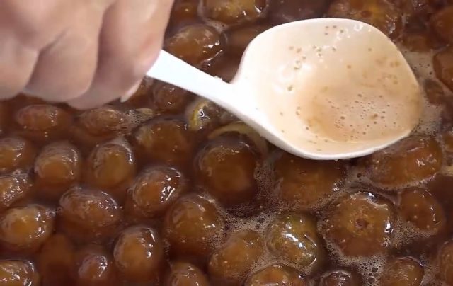 Se agrega jugo de limón exprimido al jarabe de azúcar hervido, mezclado.