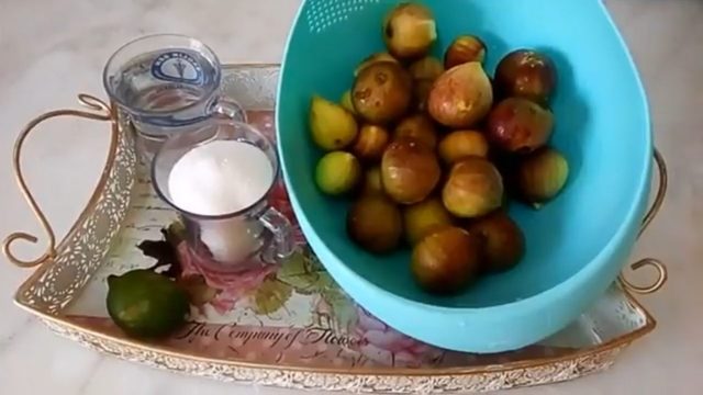 Los higos se limpian de las hojas y se quita el tallo, se lava bien. Las frutas preparadas se cubren con azúcar 1 kg por 1 kg, déjelo reposar (cuanto más tiempo permanezca en azúcar, más suave estará la fruta en la mermelada).