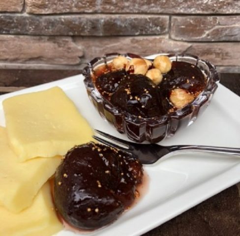 Por tercera vez, se pone al fuego la mermelada de higo enfriada con avellanas y se le agregan rodajas de limón. Lleve a ebullición, reduzca el fuego y cocine a fuego lento hasta que el almíbar parezca miel.