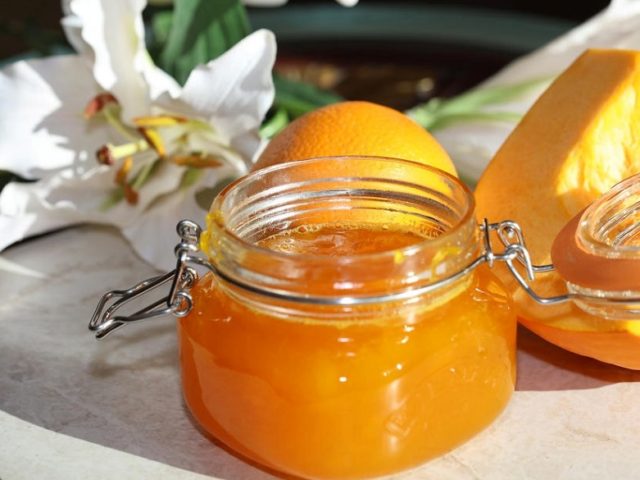 Un postre de calabaza tan brillante y agradable será una carta de triunfo en la mesa de la cena, y los pasteles preparados con la adición de esta mermelada se volverán mucho más sabrosos y saludables. Un requisito previo para tal pieza de trabajo es la esterilización de latas, si es posible en un horno, microondas: