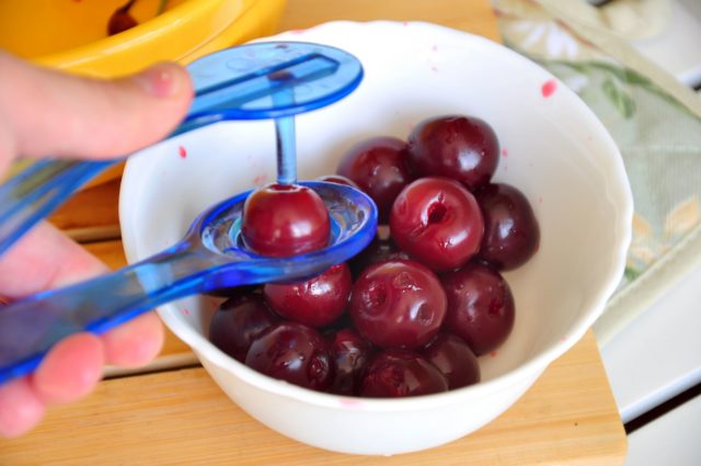 - Quite los huesos de las cerezas.