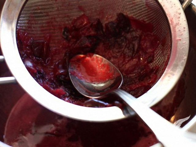 - Colar el almíbar de cereza con una gasa doblada en varias capas.