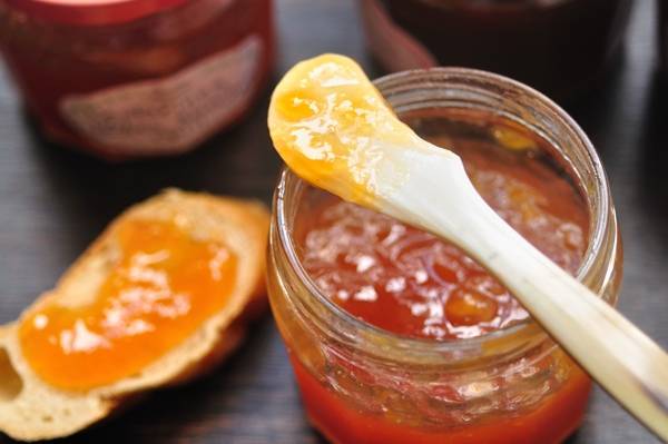 Confiture se puede llamar el hermano francés de la mermelada. Pero a menudo lo hacen con el uso de espesantes: gelatina o agar-agar. En la mermelada cocida, los trozos permanecen intactos, mientras que la mermelada implica que están completamente hervidos.El membrillo en sí contiene muchas pectinas y no es necesario agregarle agentes gelificantes.