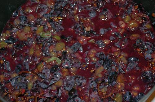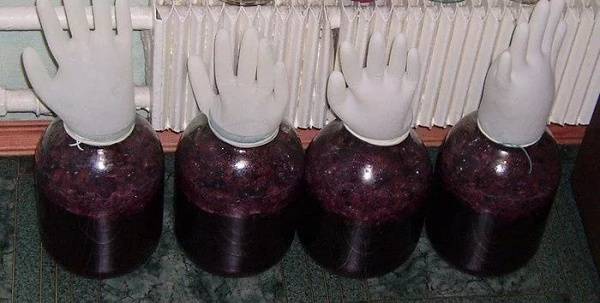 Amasamos las uvas sin lavar, exprimimos y luego procedemos como se describe arriba.