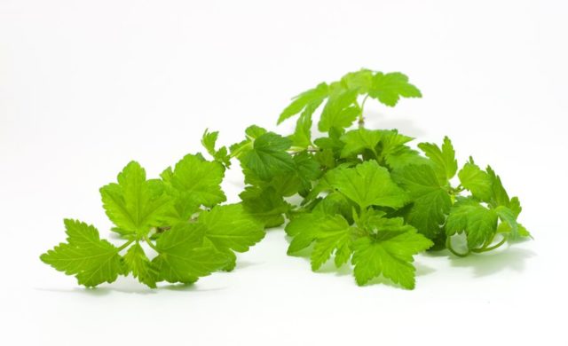 - Hojas frescas de grosella negra. Deben estar limpios, libres de manchas y rastros de enfermedades o actividad de insectos dañinos. Es mejor recolectar las materias primas en clima seco, no antes de las 10 de la mañana, para que el rocío tenga tiempo de evaporarse. Las hojas de champán de grosella negra se pueden arrancar a mano o cortar con tijeras.