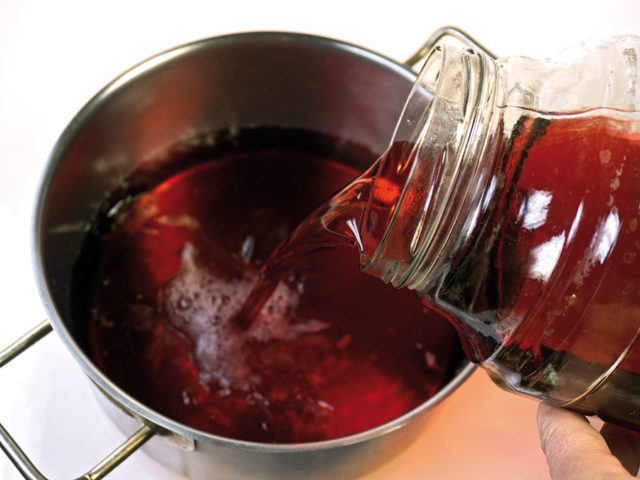 Vierta las bayas ralladas con almíbar tibio, colóquelas en una habitación cálida. Use un guante médico en la parte superior. Recuerde agitar para evitar que se forme moho en la superficie.