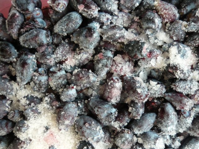 - Clasificar las bayas, lavar, secar, picar y poner en un recipiente de fermentación. Cubra con azúcar.
