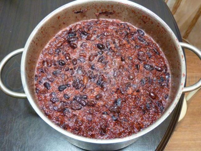 - Clasifique las bayas, retire las estropeadas e inmaduras, lave, muela en una picadora de carne y déjelas durante varios días en una habitación cálida para que dejen salir el jugo.